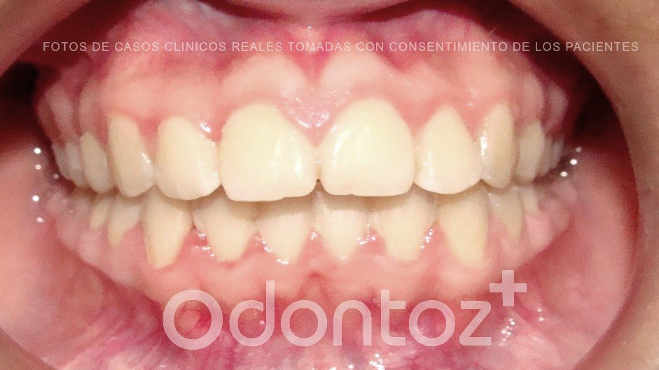 CASOS CLINICOSOdontoz2019-09-06T23:17:27+00:00 CASO CLÍNICO APIÑAMIENTO SEVERO – BRACKETS METÁLICOS INICIALAPIÑAMIENTO SEVERO CASO INICIAL Paciente con apiñamiento severo, dientes chuecos y falta de espacio para alinear sus dientes.PROGRESO1 AÑO DE TRATAMIENTO DURANTE TRATAMIENTO Dientes alineados y nivelados con brackets metálicos con 18 meses de tratamiento.FINALESTÉTICA Y FUNCIÓN ADECUADA FINAL DE TRATAMIENTO Dientes alineados con estética y función adecuada. Paciente muy satisfecho con los resultados del tratamiento. CASO CLÍNICO APIÑAMIENTO MODERADO – BRACKETS ESTÉTICOS APIÑAMIENTO MODERADO CASO INICIAL Paciente con apiñamiento moderado, dientes chuecos y falta de espacio para alinear sus dientes.APIÑAMIENTO SEVERO DURANTE TRATAMIENTO Tratamiento con brackets estéticos finalizando en 12 meses de tratamiento.APIÑAMIENTO MODERADO FINAL DE TRATAMIENTO Dientes alineados con estética y función adecuada. Paciente muy satisfecha con los resultados del tratamiento. CASO CLÍNICO APIÑAMIENTO MODERADO – BRACKETS METÁLICOS APIÑAMIENTO MODERADO CASO INICIAL Paciente con apiñamiento moderado, dientes chuecos y falta de espacio para alinear sus dientes.APIÑAMIENTO MODERADO DURANTE TRATAMIENTO Paciente con apiñamiento moderado, dientes chuecos y falta de espacio para alinear sus dientes.APIÑAMIENTO MODERADO FINAL DE TRATAMIENTO Finalización de tratamiento de 12 meses con estética y función adecuada CASO CLÍNICO DIENTE ANTERIOR GIROVERSADO – BRACKETS METÁLICOS DIENTE CON GIROVERSIÓN CASO INICIAL Paciente con el diente incisivo central superior izquierdo girado 90 grados.DIENTE CON GIROVERSIÓN CASO INICIAL Vista oclusal del diente girado y falta de espacio para alineamiento.DIENTE CON GIROVERSIÓN FINAL DE TRATAMIENTO Finalización de tratamiento con 5 meses, alineamiento de diente